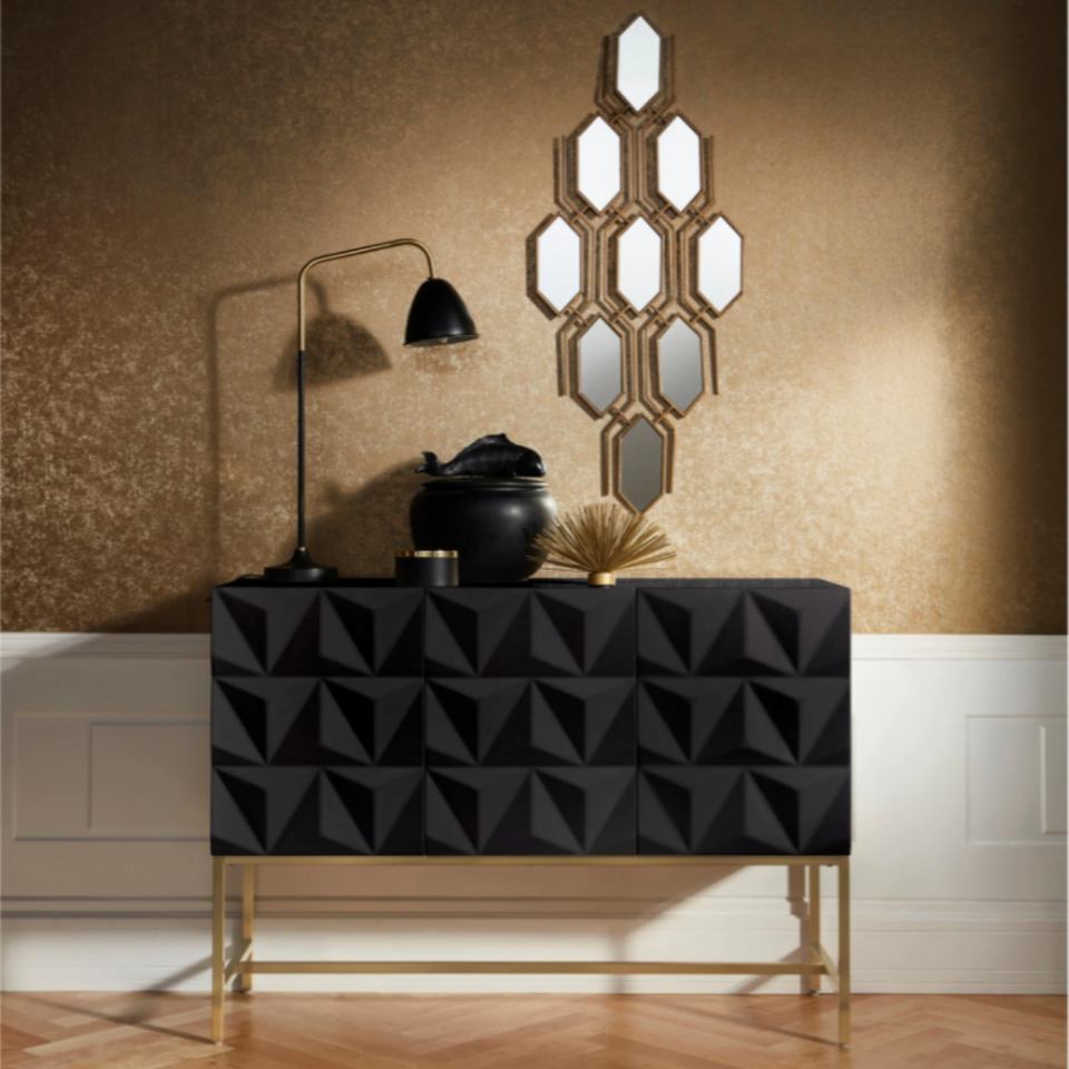 ตู้ไซด์บอร์ดสไตล์ดั้งเดิมสุดหรู ทำจากไม้อัดเอ็มดีเอฟ สำหรับบ้านหรือโรงแรม ฐานโลหะสีทอง เหมาะสำหรับห้องนั่งเล่นหรือห้องนอน