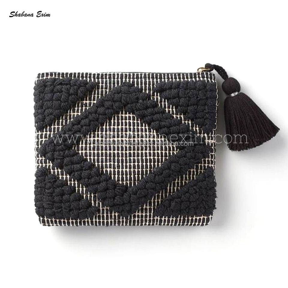 กระเป๋าคลัทช์สไตล์โบฮีเมียนถักด้วยมือน่ารักทันสมัยหรูหราสำหรับผู้หญิงกระเป๋าโบฮีเมียนแฟชั่นปักลายด้วยซิปปิดบุผ้าฝ้ายอินเดีย