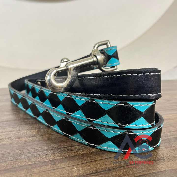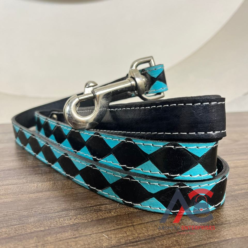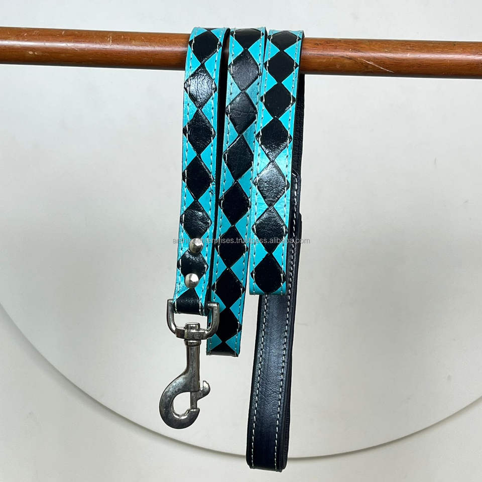 Luxurious Walking Dog Checkered Pattern Hand Tooled Genuine Leather Handle Traction Collar Pet Dog Leash Harness Dog Accessories