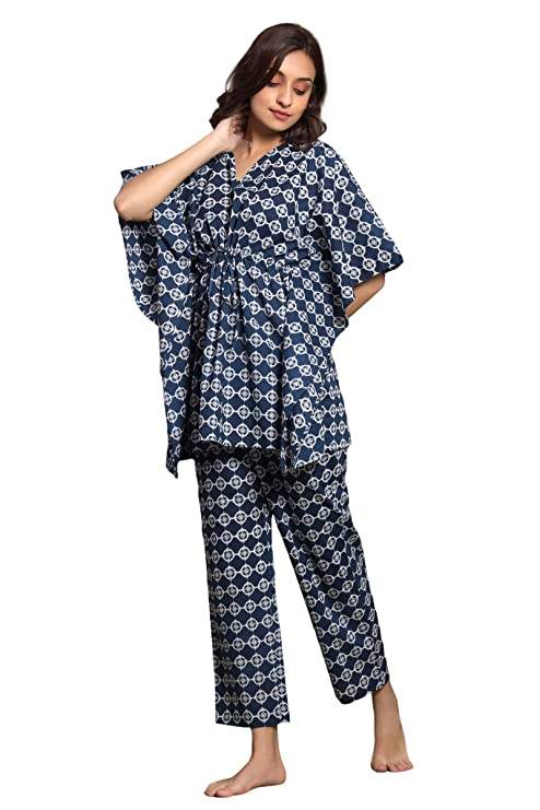 Luxurious Western Women's Cotton Printed Kaftan TOP Pajama Night Suit Set Comfortable Wear for Women and Girls Outfits Items Set