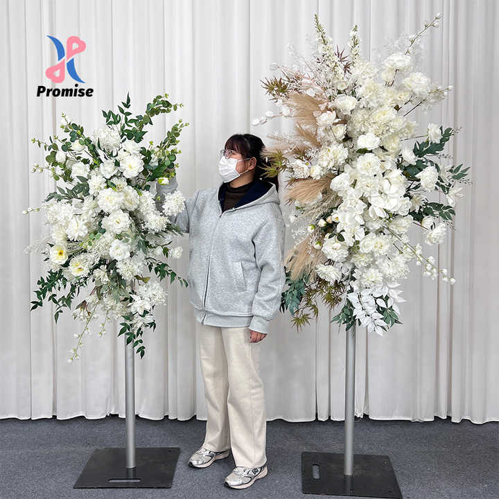 ซุ้มดอกไม้ประดิษฐ์สีขาวหรูหราเหมือนจริงจากผ้าไหม สำหรับตกแต่งฉากหลังงานแต่งงานและงานอีเว้นท์