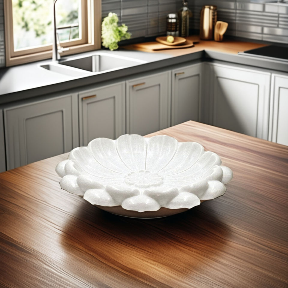 ชามตกแต่งทรงดอกบัวหินอ่อนสีขาวหรูหราสง่างามเน้นขนาดเล็กสำหรับบ้านและโต๊ะ