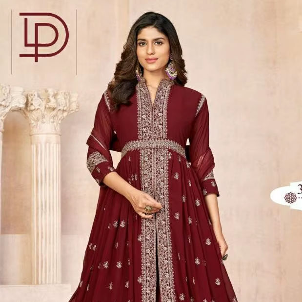 ชุดแต่งกายสุดหรูสำหรับฤดูหนาวผ้าเชอร์วานีปักลายผ้าจอร์เจียและผ้าชีฟองสไตล์อินเดียซาลวาร์มาเมซ