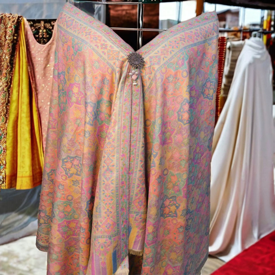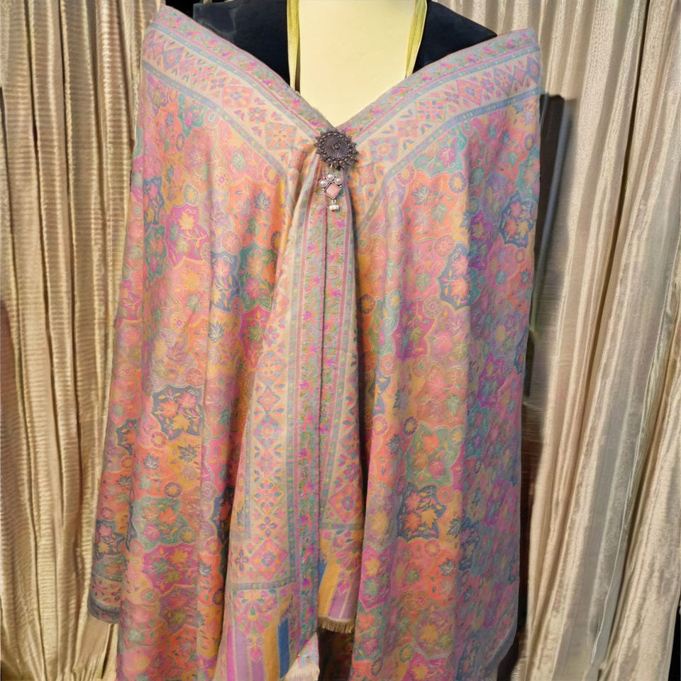 ผ้า Pashmina มีผ้าทออย่างดีและงานศิลปะดอกไม้ประเภทเสื้อผ้า