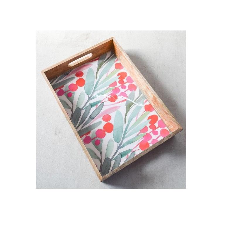 Luxurious Wood Serving Tray with Enamel Printed for Handicraft Item at Cheap Price Good Quality Rectangular Serving Tray of Wood