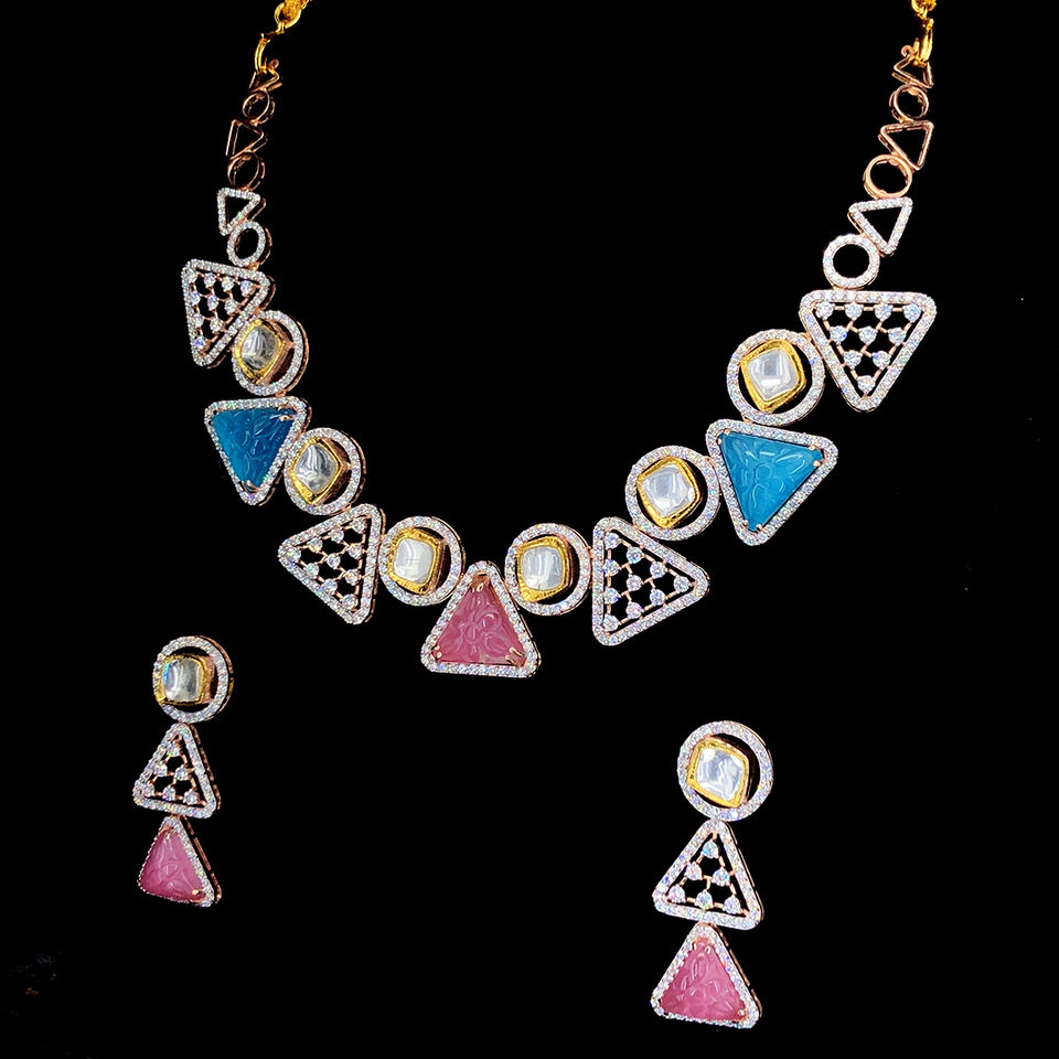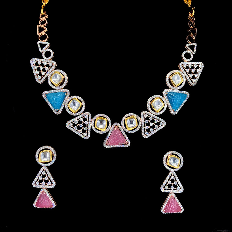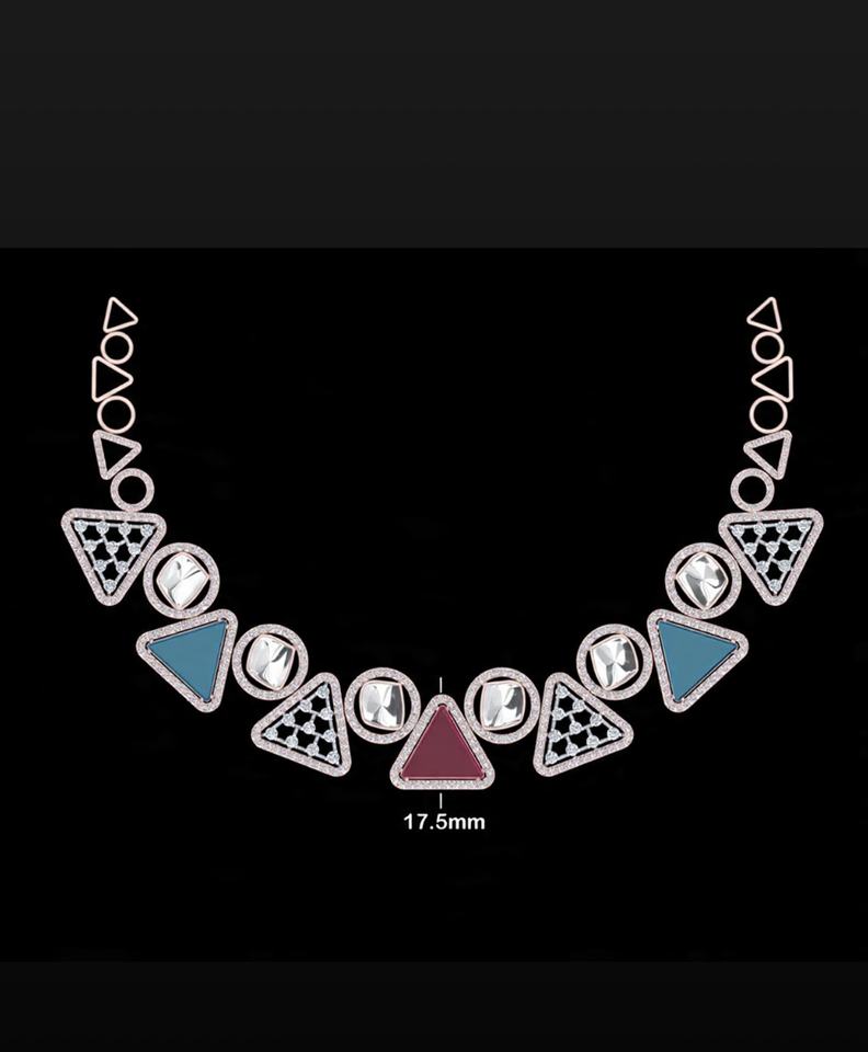 ชุดสร้อยคอเพชรทรงเรขาคณิตหรูหรา ประดับเพชรทรงเหลี่ยมเจียระไนแบบธรรมชาติ ทองคำโรสโกลด์ 18KT ได้รับการรับรองจาก IGI ความใสระดับ VVS-VS