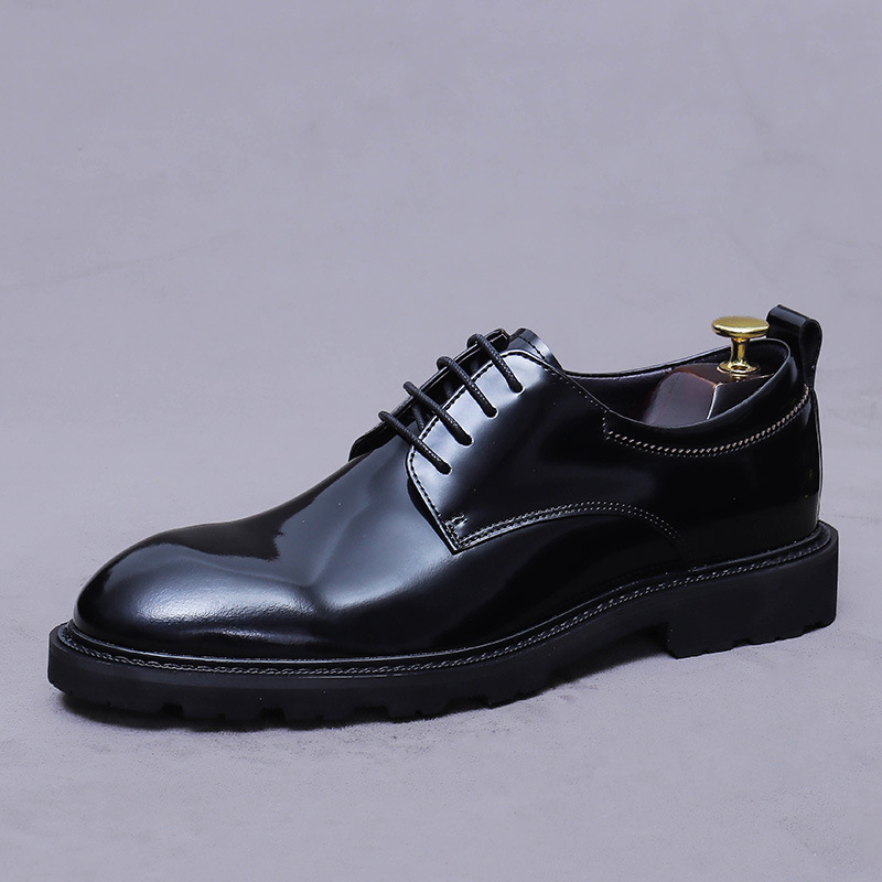 รองเท้าหนังผู้ชายสุดหรู ดีไซน์เรโทรสไตล์อังกฤษ หนังแท้ ผิวมันเงา รองเท้าเดอร์บี้ทำมือสำหรับผู้ชาย