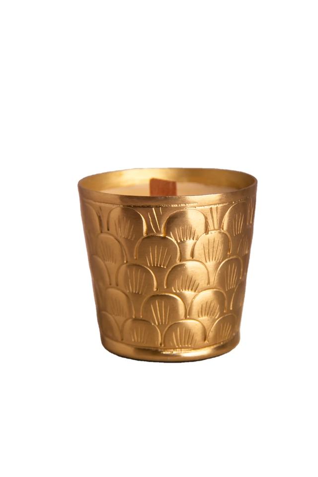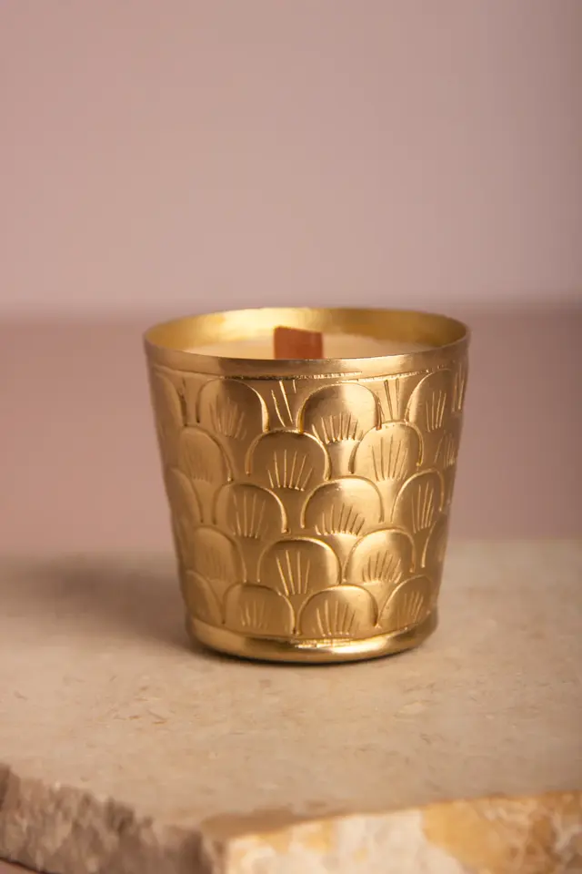 เชิงเทียนโลหะสีทองสุดหรูที่ทำจากทองเหลืองสลักลายหอยเชลล์และขัดเงาภายในเรียบ