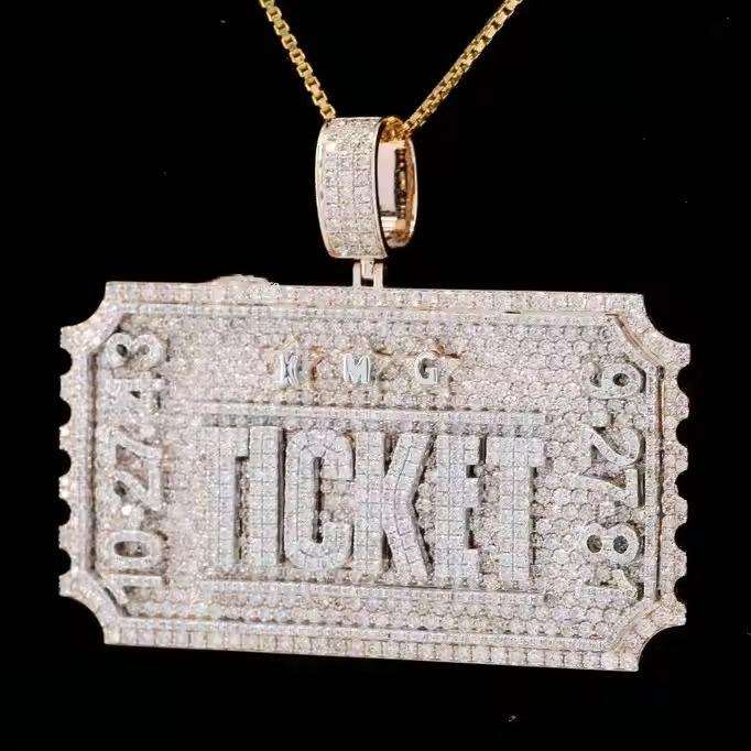 จี้เพชรรูปตั๋วเพชรมอยส์ซาไนต์สุดหรูสร้อยคอเครื่องประดับแนวฮิปฮอปแบบออกแบบได้ตามต้องการเหมาะสำหรับเป็นของขวัญและสวมใส่ในงานปาร์ตี้