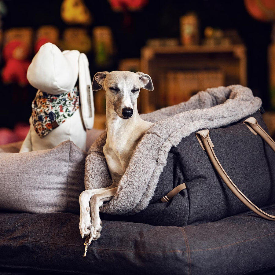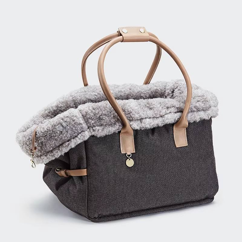 กระเป๋าเดินทางสำหรับสัตว์เลี้ยงสุดหรูพร้อมซับในหนังแกะ
