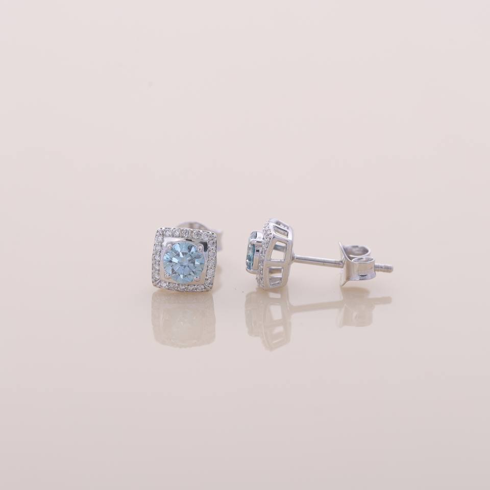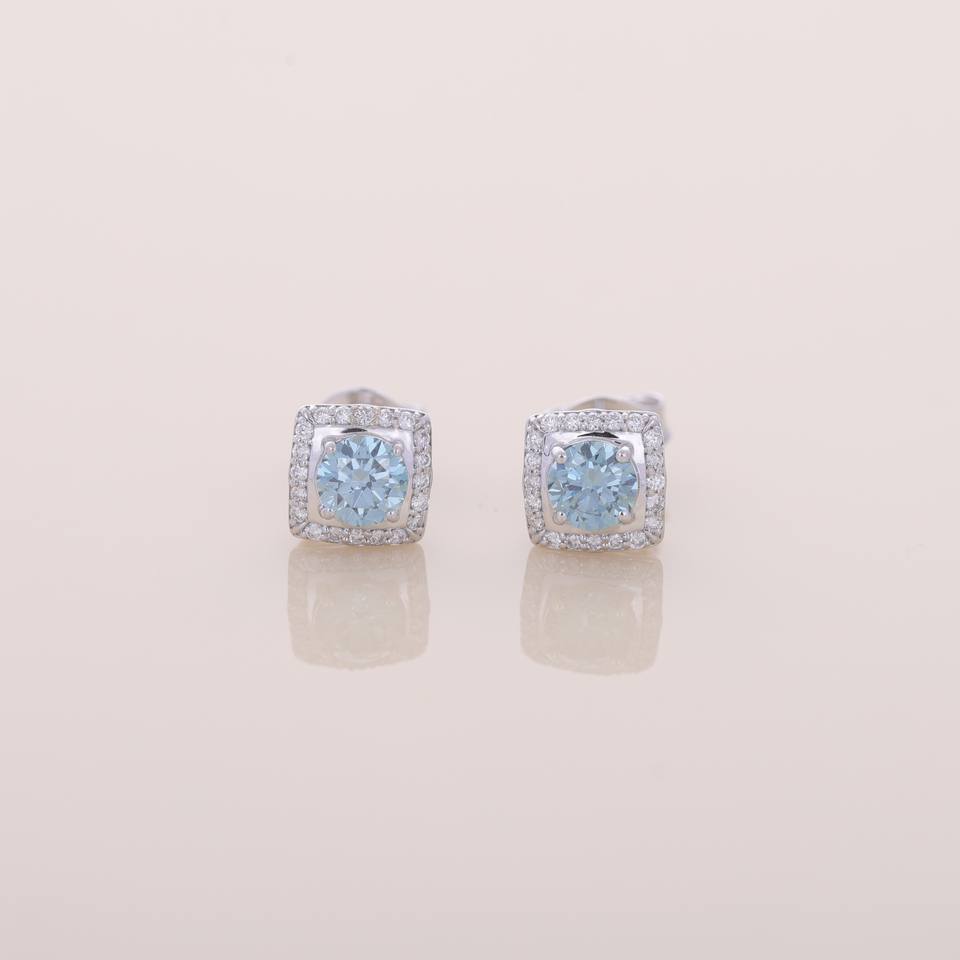 ต่างหูเพชรทรงกลมสีน้ำเงิน 0.64 กะรัต หรูหรา ได้รับการรับรองจาก IGI ชุบโรเดียม ทองคำขาว 9K สีเหลือง ขาว และโรสโกลด์