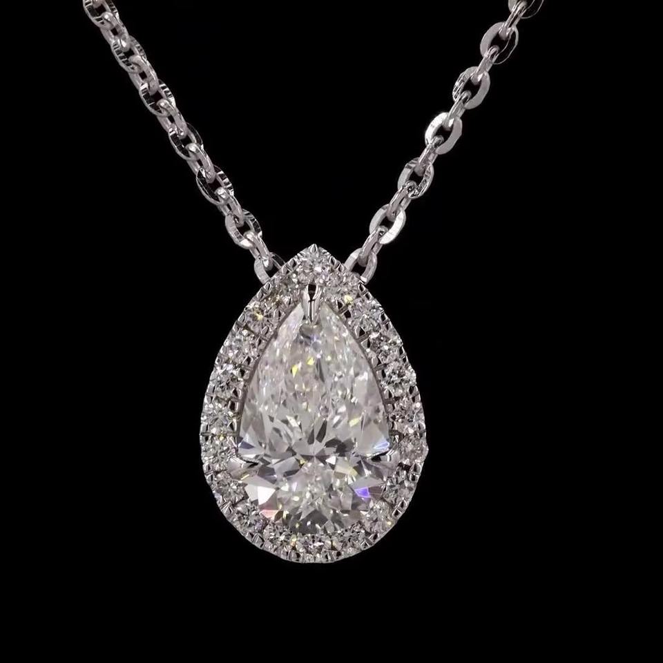 สร้อยคอจี้เพชรรูปลูกแพร์1.19 CT สีขาวทอง14K เครื่องประดับชั้นดีน้ำหนักเบาสำหรับทุกวัน