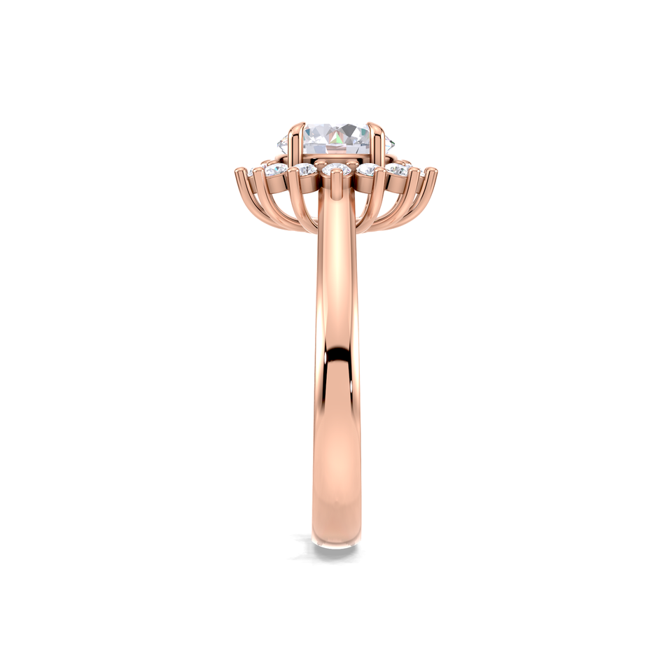 แหวนหมั้นเพชรทรงกลม 1.25 กะรัต ดีไซน์ดอกทานตะวัน ประดับเพชรรอบวง ตัวเรือนทอง 9K สีเหลือง ขาว และโรสโกลด์ พร้อมแหวนแต่งงานคลาสสิกสำหรับผู้หญิง