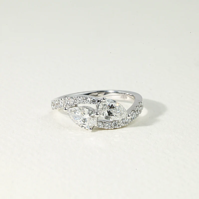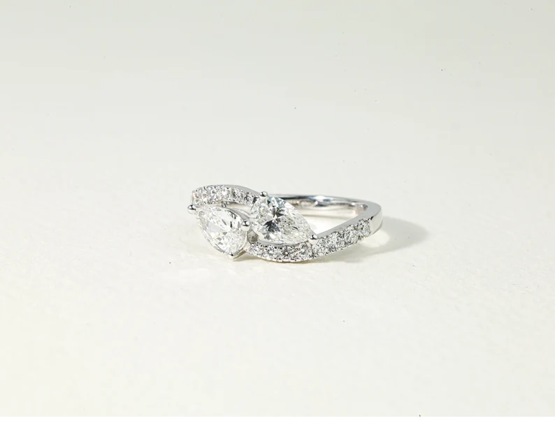 Luxury 1.5 CT Lab Grown Diamond Toi Et Moi Engagement Ring For Women Featuring E VS Pear Pear Cut Lab Created Diamonds Design