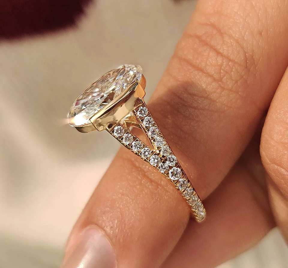 แหวนเพชรทรงรี 1 กะรัต หรูหรา ทองคำชมพูแท้ คลาสสิก สำหรับงานหมั้นและงานแต่งงาน ผู้หญิง ปราศจากนิกเกิล ปราศจากสารตะกั่ว