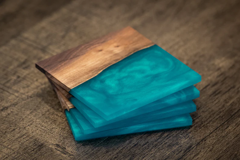 แผ่นรองแก้วกาแฟทำจากเรซินอีพ็อกซี่สี่เหลี่ยมจัตุรัสขนาด10ซม. แผ่นปูโต๊ะแบบปรับแต่งได้แผ่นตกแต่งอย่างยั่งยืน
