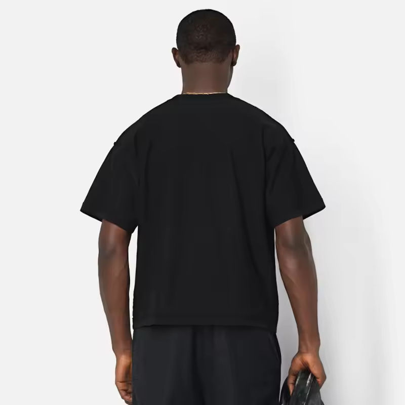 ผู้ผลิตเสื้อยืดผ้าฝ้ายแท้ 100% คุณภาพสูง แฟชั่นทรงหลวมไหล่ตก เสื้อยืดโอเวอร์ไซส์ทรงบ็อกซี่ เสื้อยืดสีดำเนื้อหนาแบบครอป