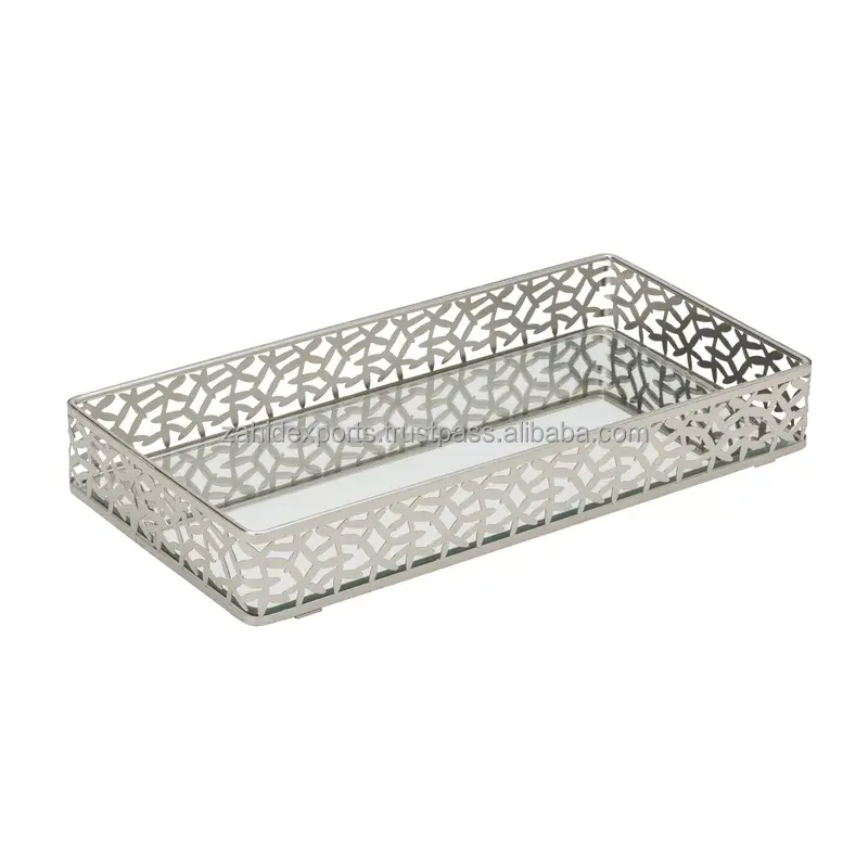 ถาดโลหะอเนกประสงค์ทำมือ 100% ดีไซน์โปรเจคชั่นสุดหรู สไตล์โมเดิร์นโบราณ ผิวสัมผัสแบบตอกลาย รูปทรงสี่เหลี่ยมผืนผ้า ของตกแต่งคริสต์มาส