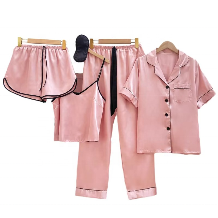 ชุดนอนผ้าไหมแท้ 100% ระดับพรีเมียม 6 ชิ้น สำหรับผู้หญิง ชุดนอนฤดูร้อน ผ้าระบายอากาศ นุ่มสบาย ลายเรียบ พร้อมเชือกผูก
