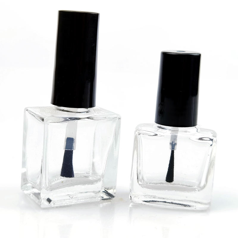 ขวดแก้วทรงเหลี่ยมสำหรับน้ำยาทาเล็บหรูหรา ขนาด 10 มล. 15 มล. พร้อมโลโก้สั่งทำพิเศษ พิมพ์ซิลค์สกรีน ฝาเกลียว บรรจุภัณฑ์เปล่า