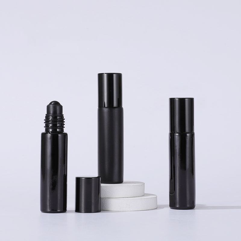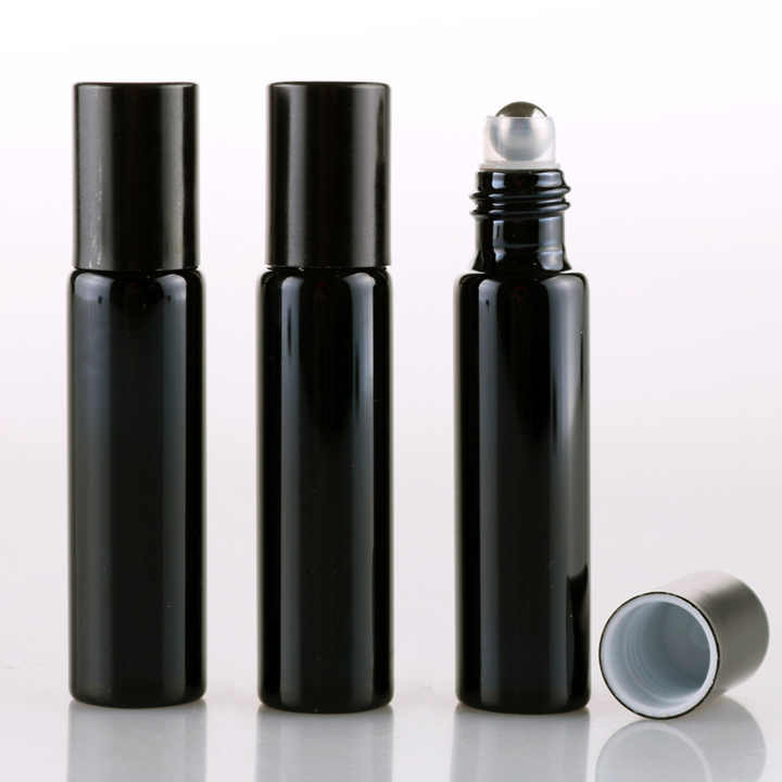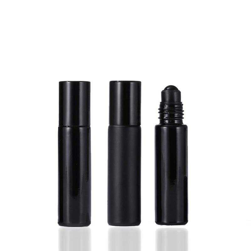 ขวดน้ำมันหอมระเหยแก้วฝ้าสีดำว่าง10มล. พร้อมฝาเกลียวสุดหรู
