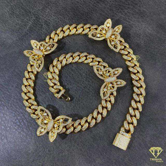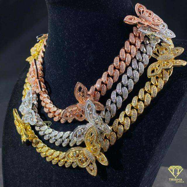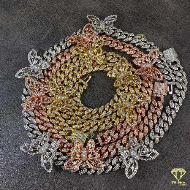 โซ่ผีเสื้อไมอามี่คิวบาสุดหรู12มม. เครื่องประดับระยิบระยับสำหรับปลูกในห้องทดลองส่วนตัว
