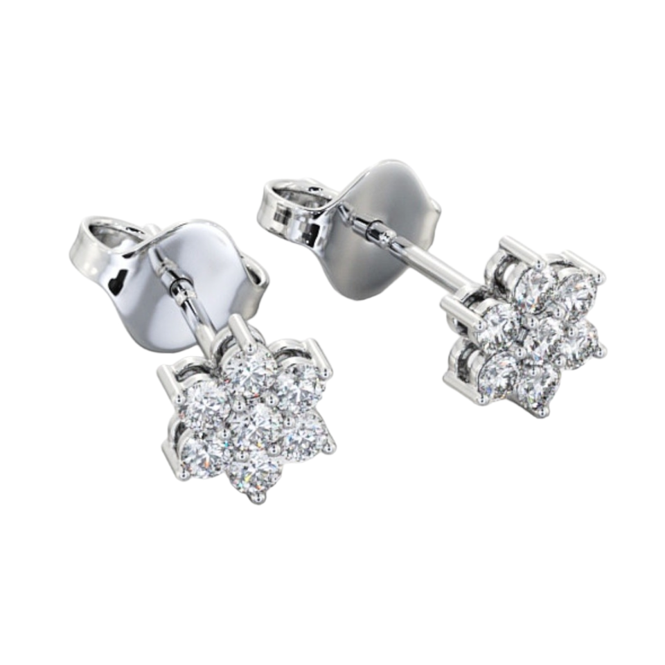 ต่างหูเม็ดกลมสีทอง14K สุดหรูสำหรับผู้หญิงเครื่องประดับชั้นดีพร้อมเพชรธรรมชาติที่ปลูกในห้องแล็บสีขาวโรสโกลด์ลวดลายดอกไม้