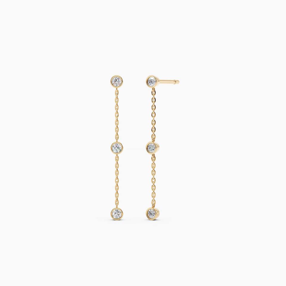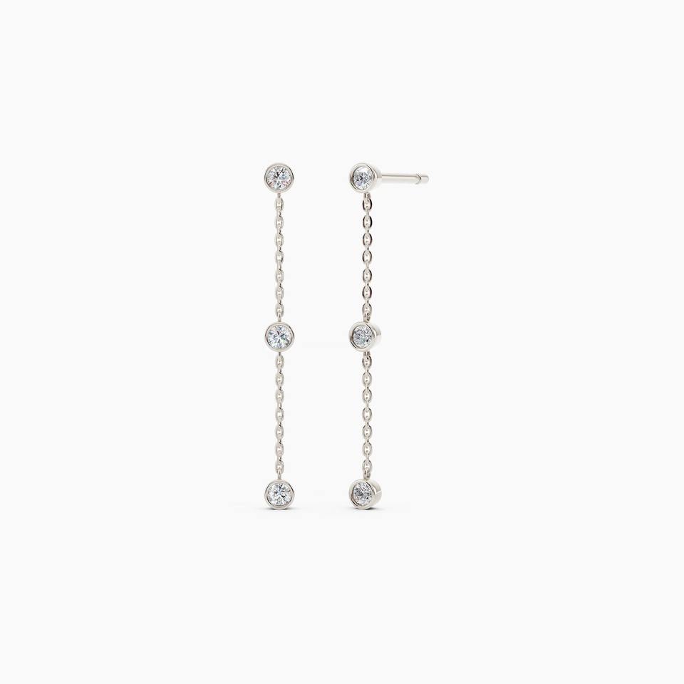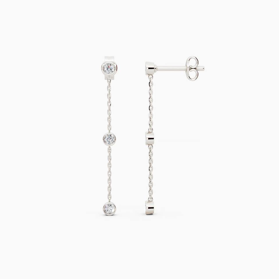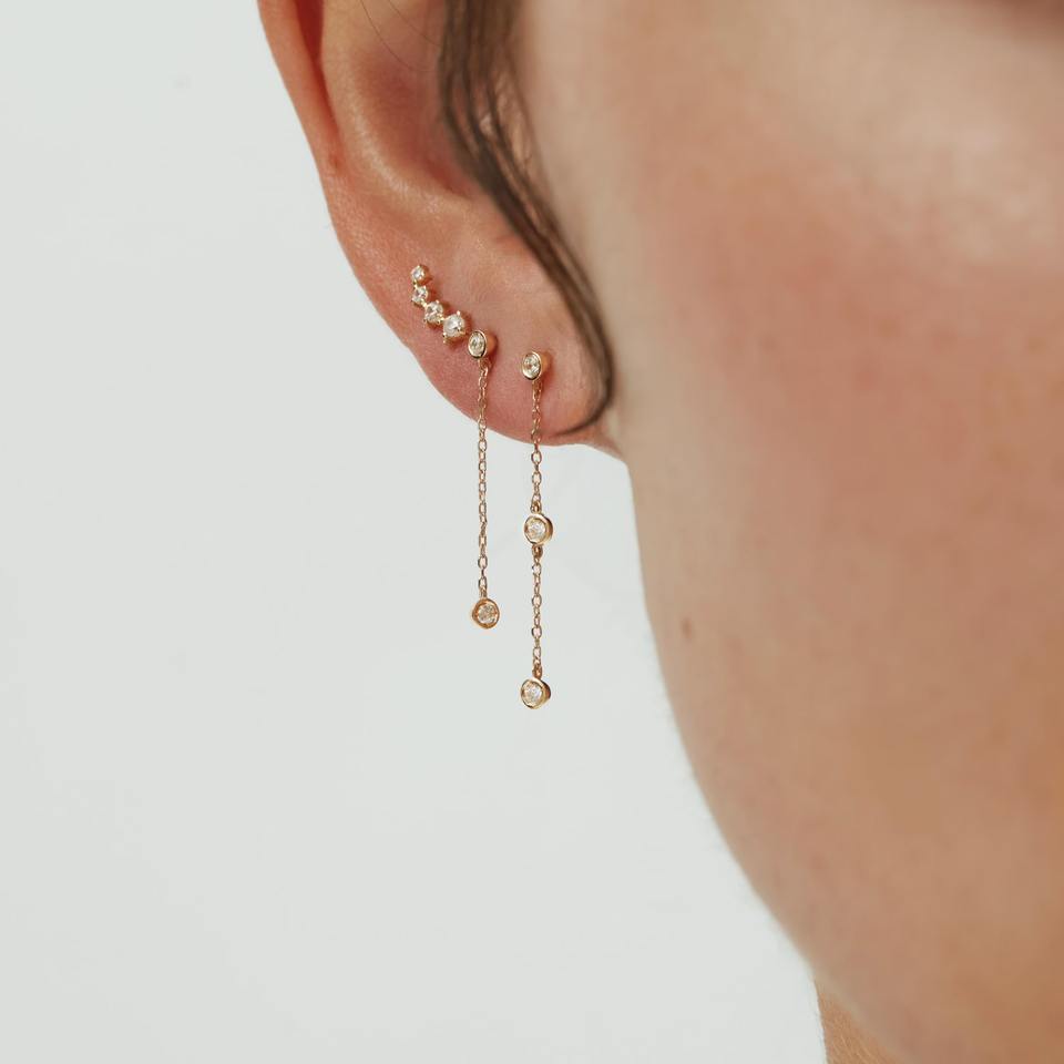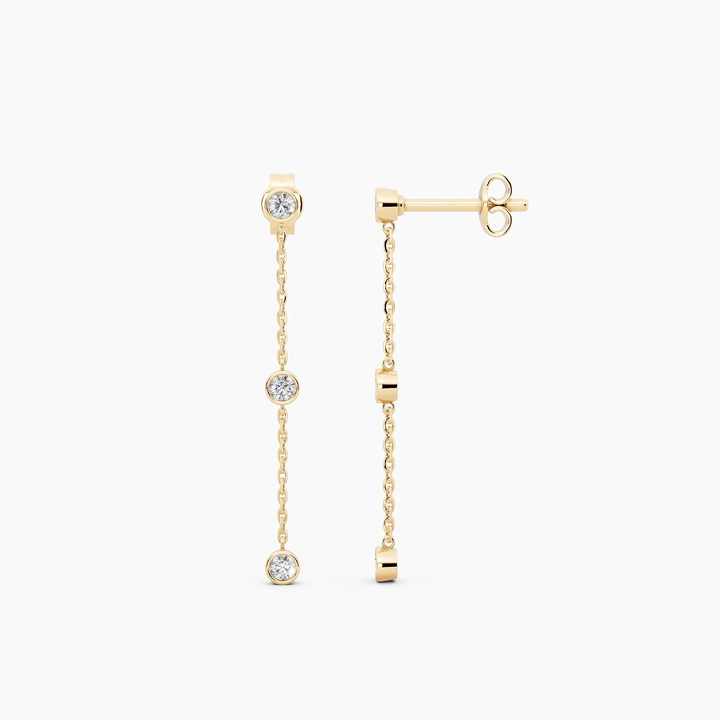 ต่างหูทองคำ 14K ประดับเพชรแล็บโกรว์ 3 เม็ด ดีไซน์เรียบหรู พร้อมสายโซ่แบบเบเซล ต่างหูมินิมอล เหมาะเป็นของขวัญสำหรับผู้หญิง