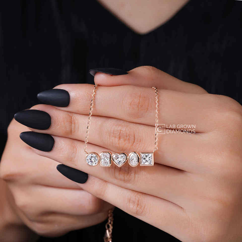 จี้เพชรโมอิสซาไนต์ทรงหลากหลายประดับทองคำขาว 14K สุดหรูสำหรับผู้หญิง พร้อมพลอยทรงมรกต วงรี ทรงหัวใจ และทรงปรินเซสคัท
