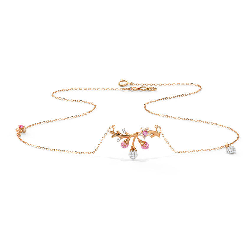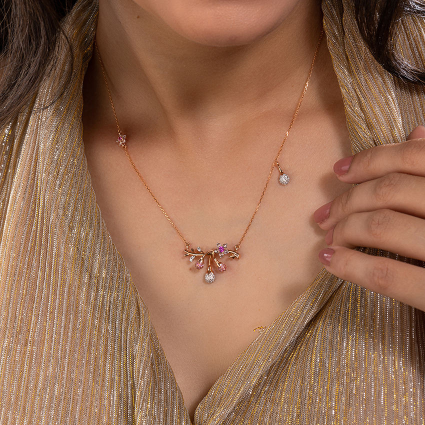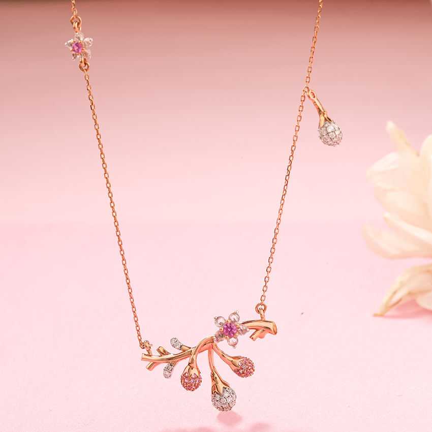 สร้อยคอทองคำ 14K สีโรสโกลด์ ประดับพลอยดอกซากุระ ดีไซน์หรูหรา สำหรับผู้หญิง เครื่องประดับคุณภาพสูง ขายส่งจากผู้ผลิตและผู้ส่งออก
