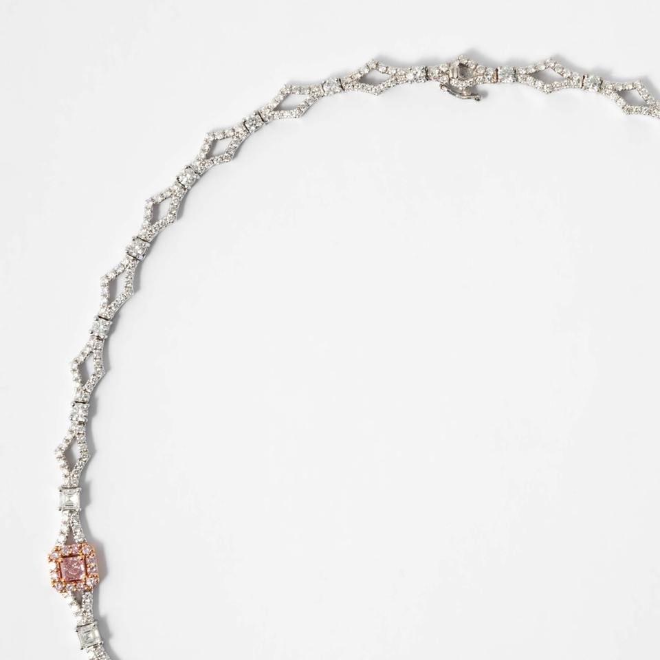 สร้อยคอเพชรทรงเหลี่ยม 20.00 กะรัต ทองคำขาว 14K หรูหรา ประดับเพชรเพาะเลี้ยงในห้องปฏิบัติการ ฝังแบบ Pave Setting รับรองโดย IGI เครื่องประดับระดับไฮเอนด์ ดีไซน์โดดเด่น
