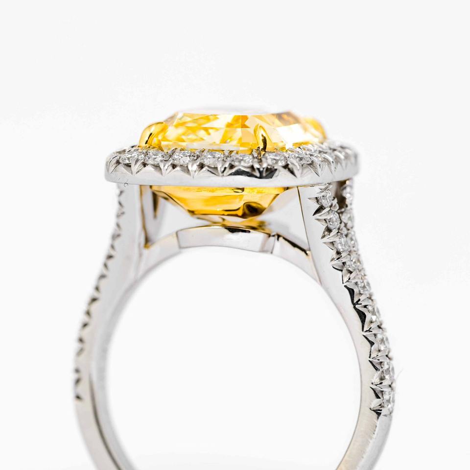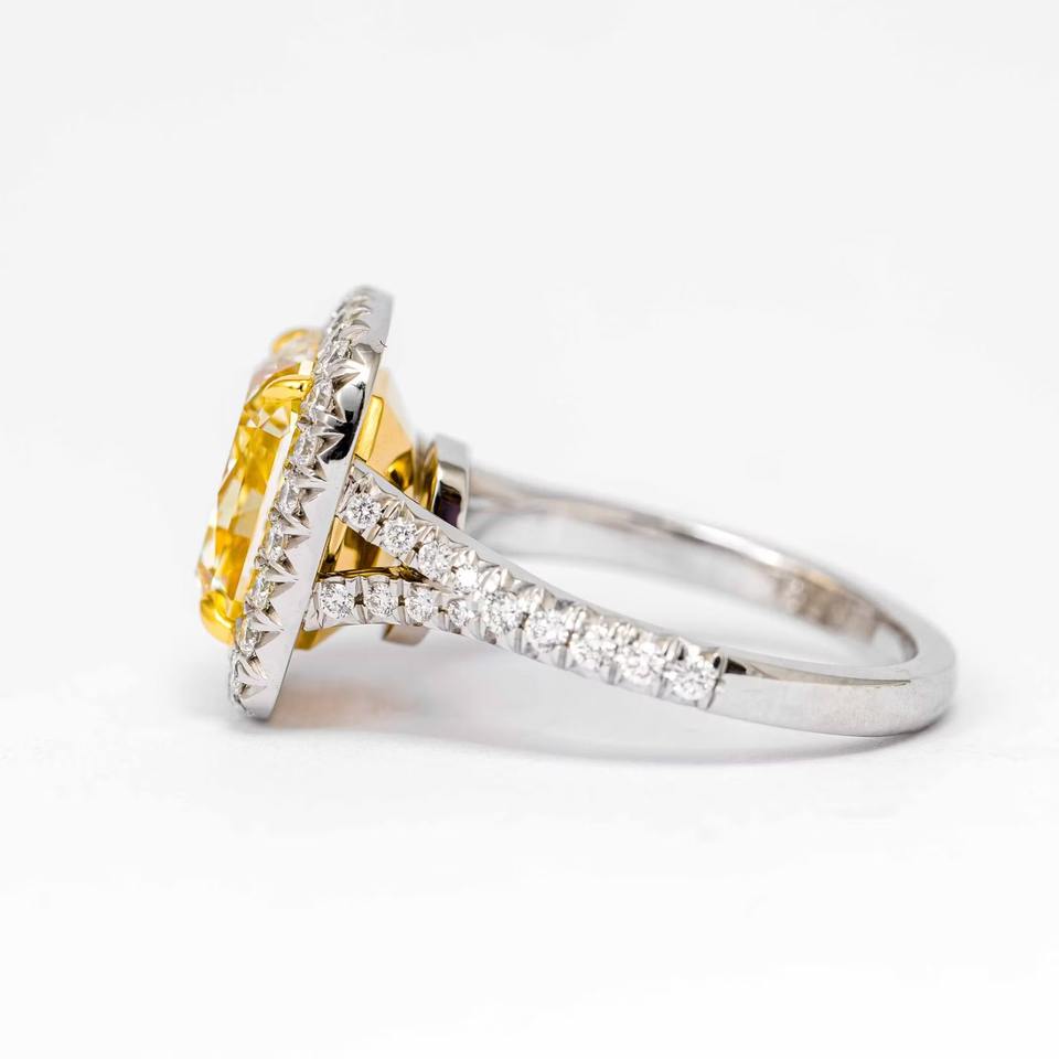 แหวนหมั้นทองคำขาว 14K หรูหรา ประดับเพชรทรงรัศมี 5.00 กะรัต สีเหลืองแฟนซี VS2 เพชรเพาะเลี้ยงในห้องปฏิบัติการ รูปทรงเรเดียนท์ ได้รับการรับรองจาก IGI น้ำหนัก 4 กรัม แบบโซลิแทร์