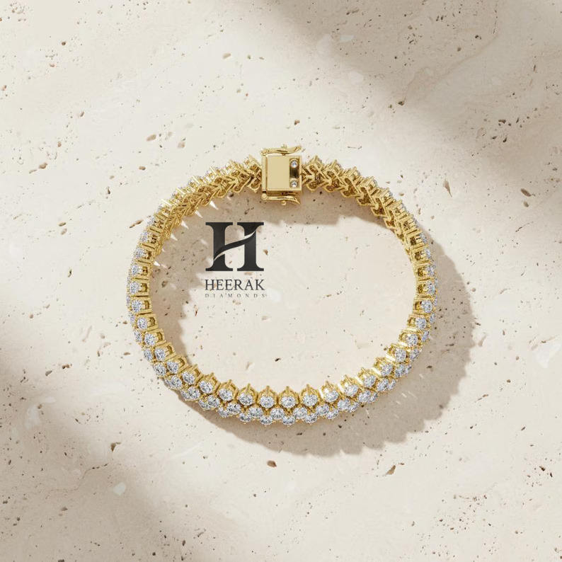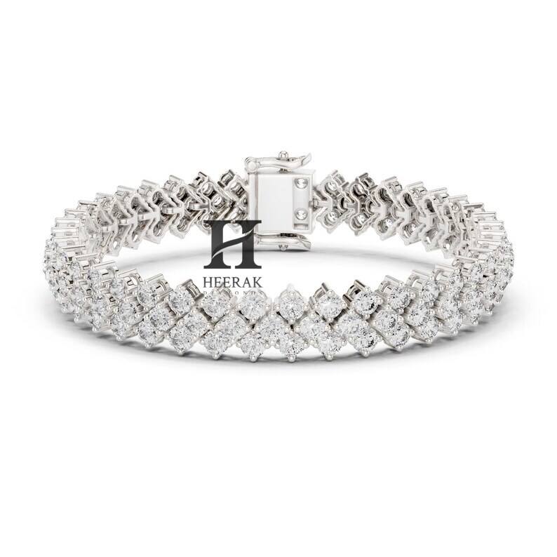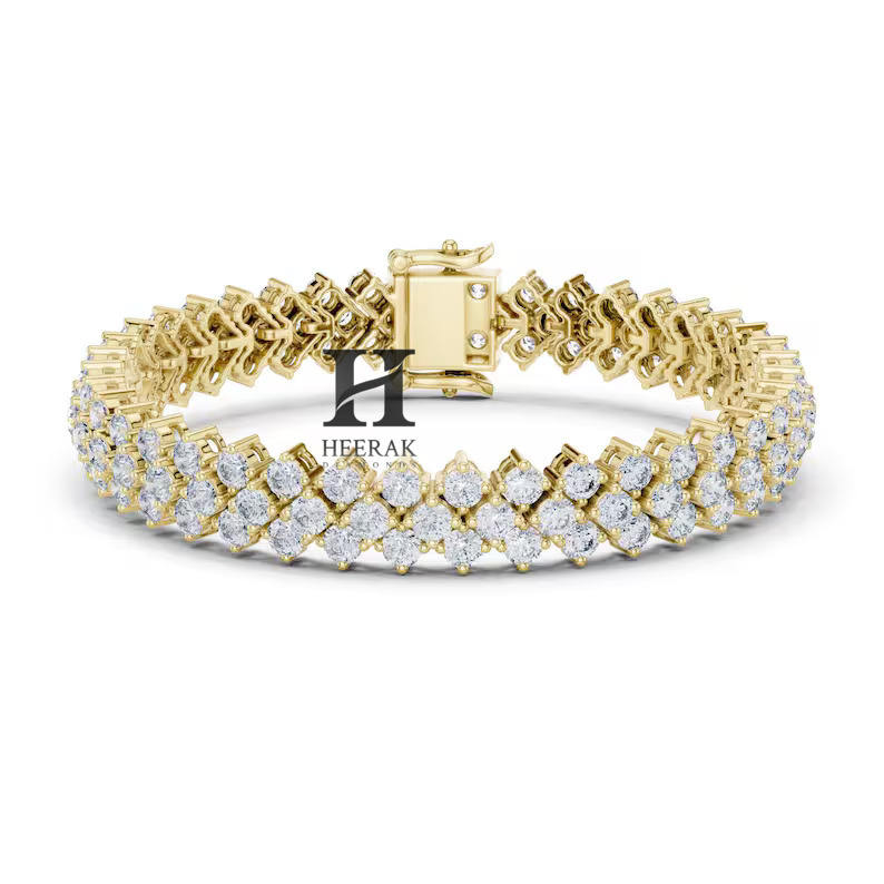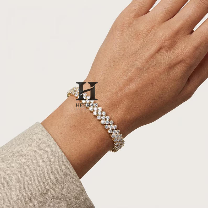 กำไลข้อมือเพชรเทนนิสทองคำขาว 14K หรูหรา ประดับเพชรหลายแถว VVS EF ทรงกลมเจียระไนแบบบริลเลียนท์ เพชรเลี้ยงในห้องปฏิบัติการ สำหรับผู้หญิง