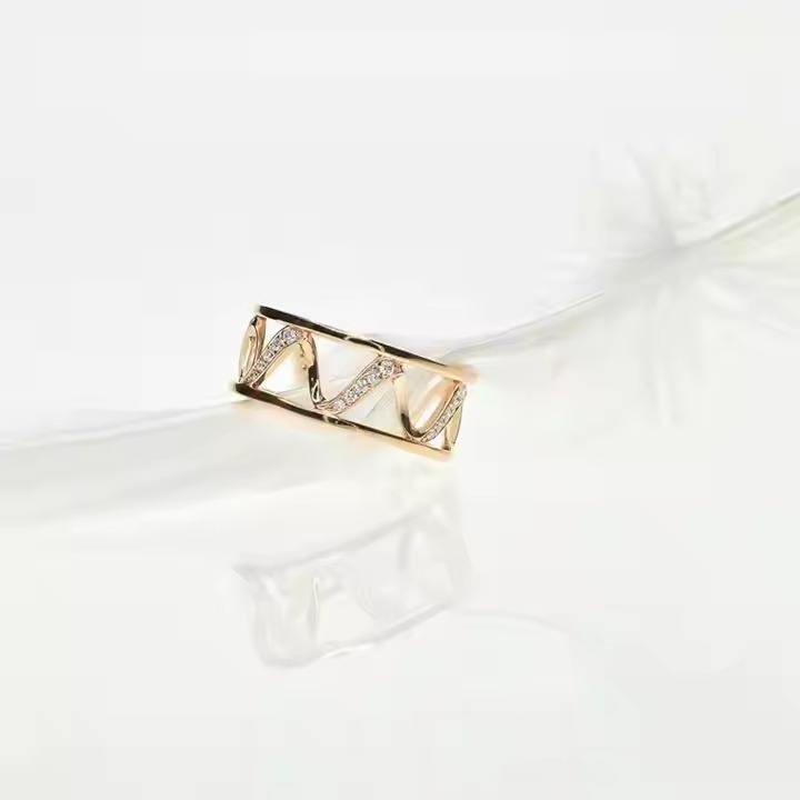 แหวนหมั้นแต่งงานสไตล์ทางศาสนาสีเหลืองทอง14K แหวนเพชรแท้วงซ้อนทันสมัย