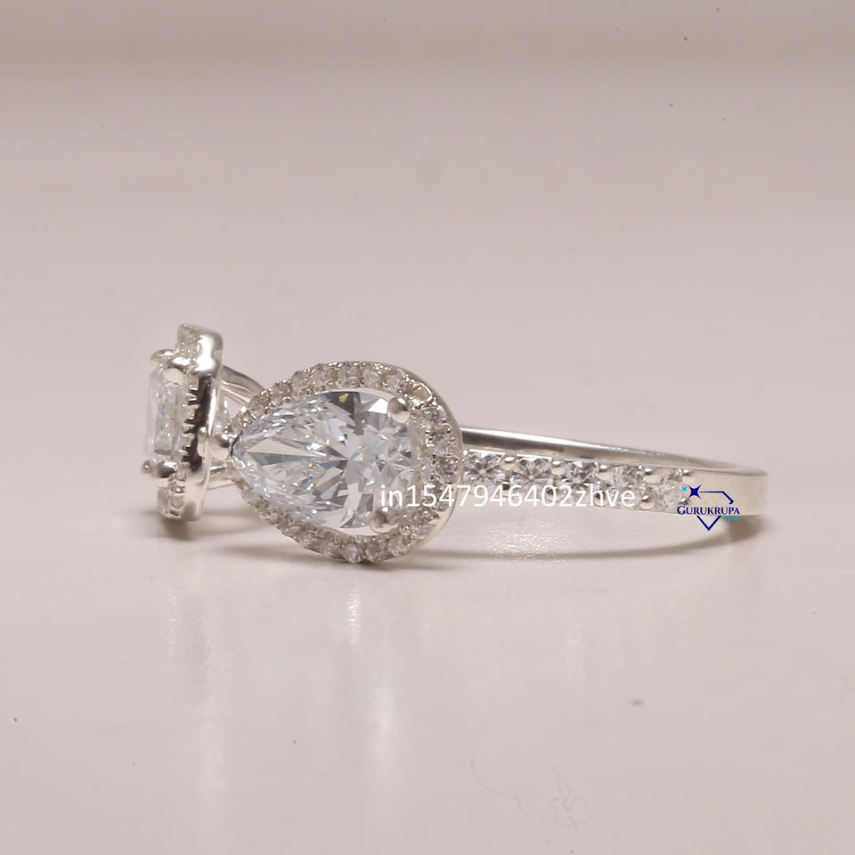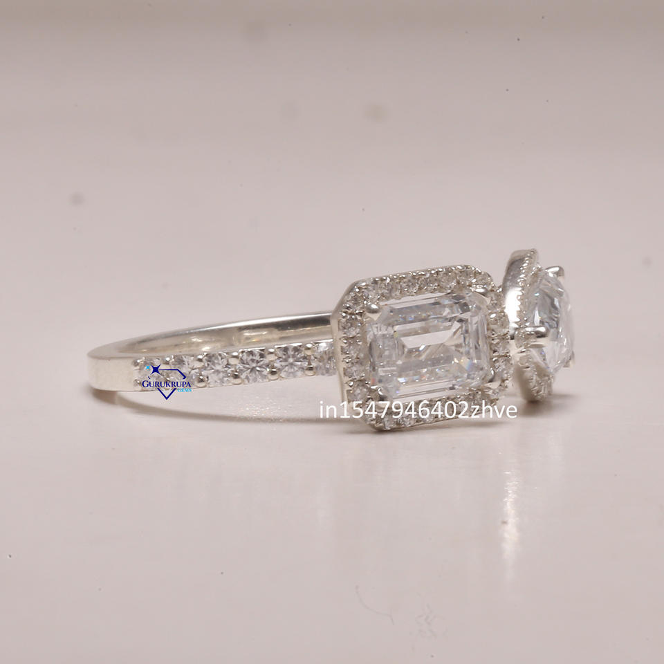 แหวนหมั้นเพชรสำหรับปลูกในห้องปฏิบัติการสีขาว14kt หรูหราสง่างามคลาสสิกสองชิ้นพร้อมใบรับรอง IGI สำหรับงานแต่งงาน