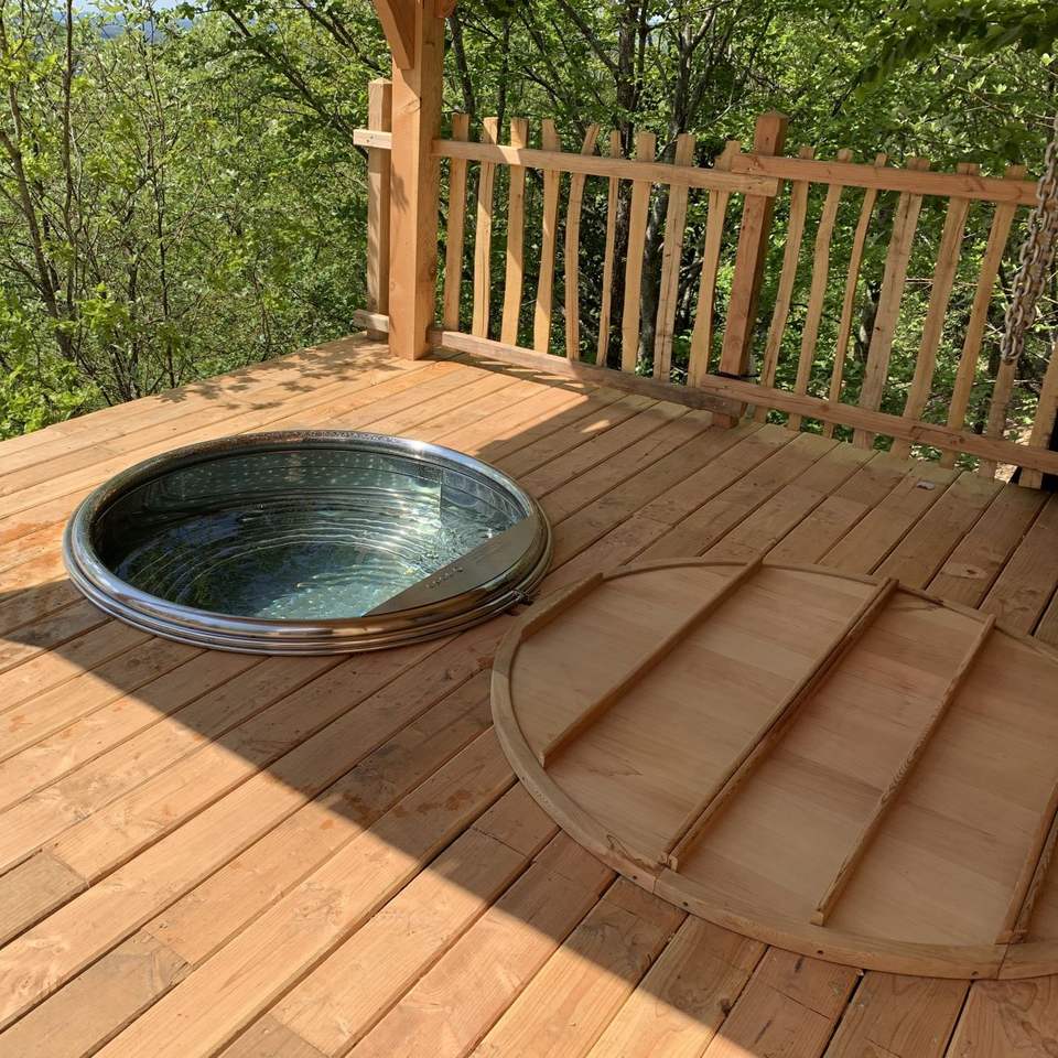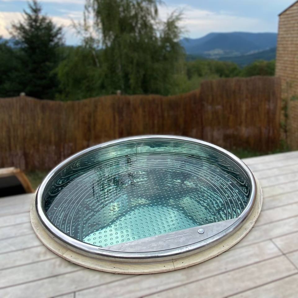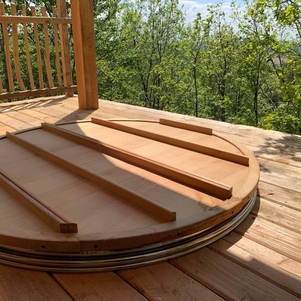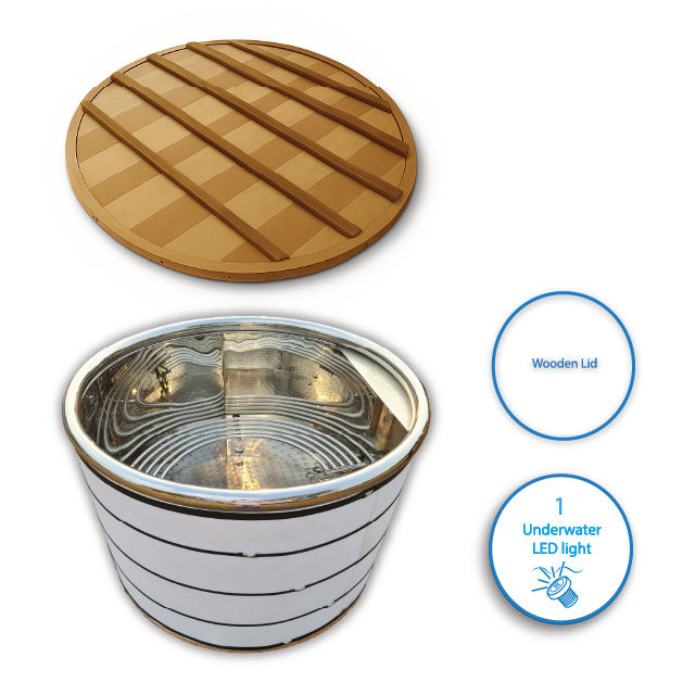 อ่างน้ำร้อนแบบฝังขนาด 150 ซม. สแตนเลส 304 คุณภาพสูง ฝาไม้ซีดาร์แดง พร้อมไฟ LED 1 ดวง สำหรับใช้งานกลางแจ้ง โรงแรม รีสอร์ท วิลล่า