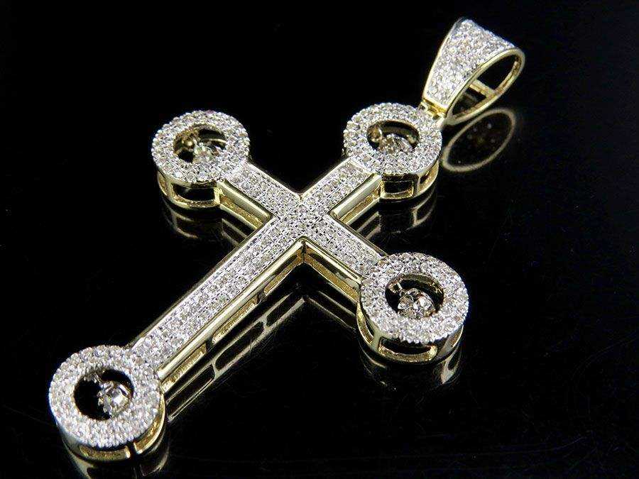 จี้รูปกางเขนเงินแท้ชุบทองคำ 18K หรูหรา ประดับเพชรโมอิสซาไนต์ VVS1 รอบวงแบบเต็มวง ดีไซน์วงแหวนวงกลม เครื่องประดับฮิปฮอปพรีเมียม