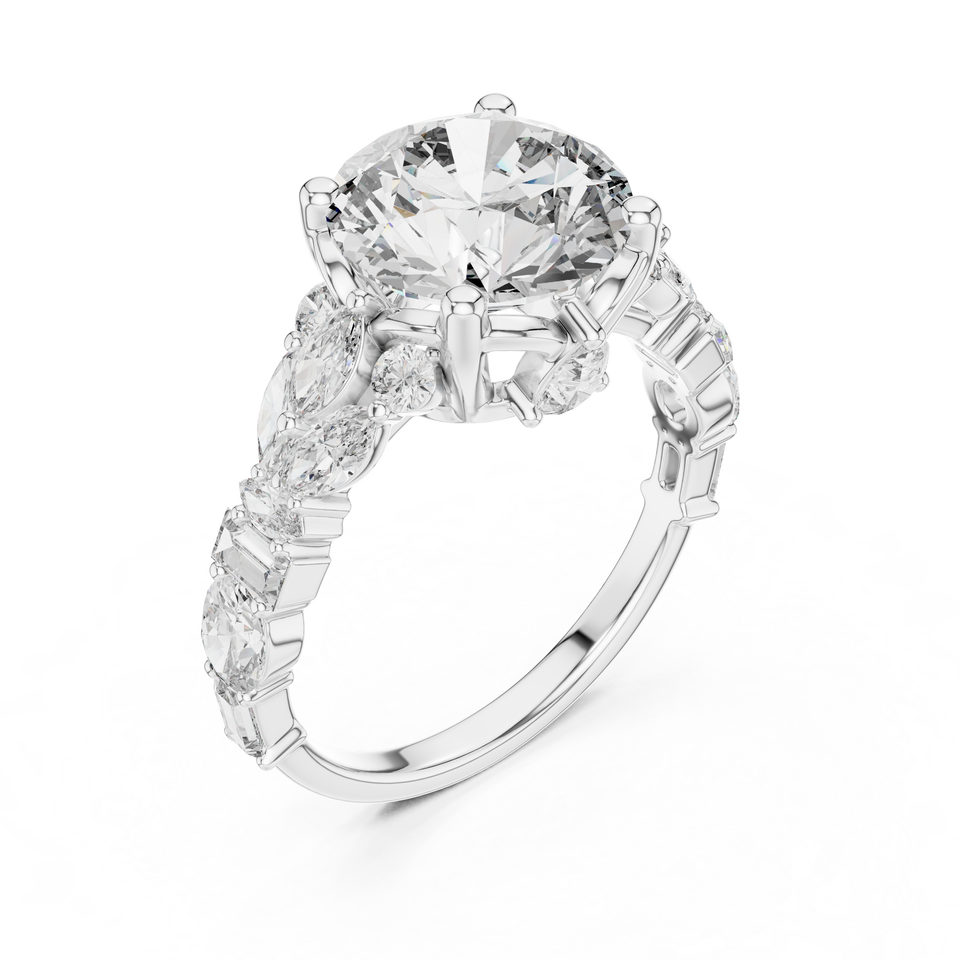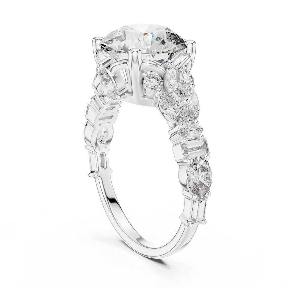แหวนหมั้นทองคำขาว 18K ประดับเพชรโมอิสซาไนต์และพลอยผสมด้านข้าง | แหวนแต่งงานดีไซน์เนอร์สำหรับผู้หญิง