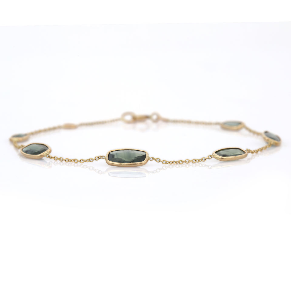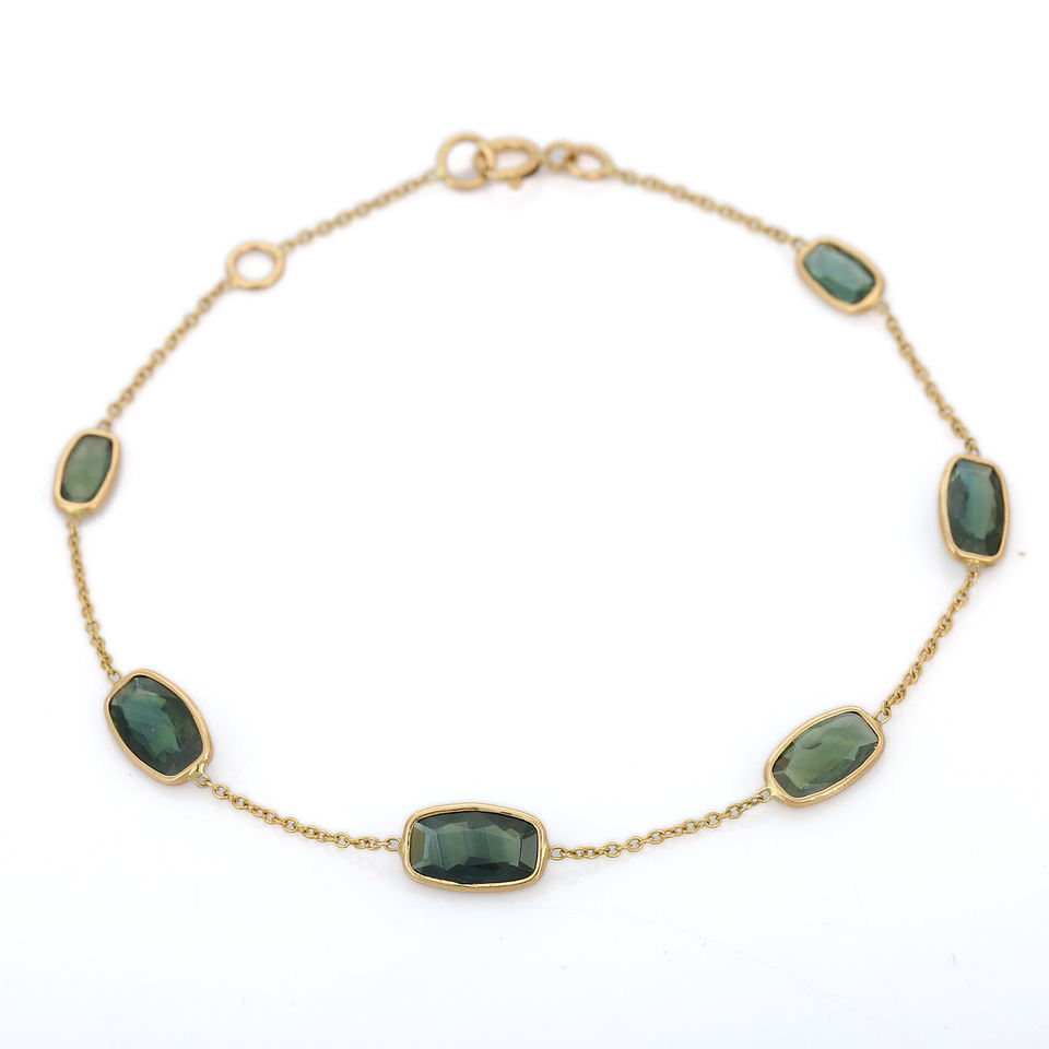 Luxury 18K Solid Yellow Gold Bracelet with Natural Octagon Green Sapphire Gemstone Minimalist Wedding Birthday Trendy Gift