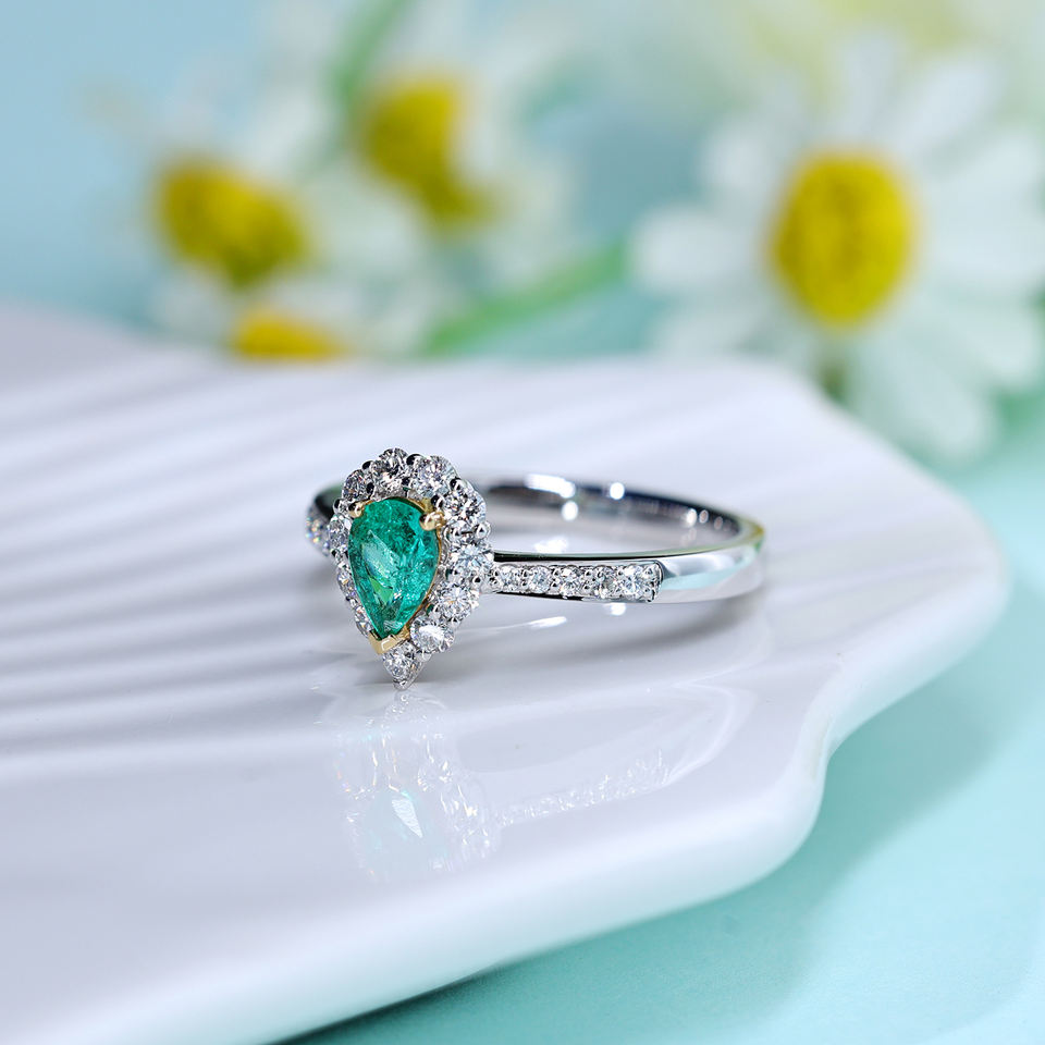 แหวนหมั้นเพชรทรงหยดน้ำมรกตคลาสสิก ชุบโรเดียมทองคำขาว 18K หรูหรา ของขวัญสำหรับงานแต่งงาน งานครบรอบ และงานเลี้ยง