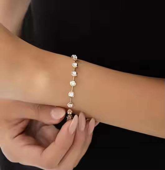 สร้อยข้อมือเทนนิสสีขาวทอง18K สุดหรู S925เรือนเงินสเตอริงสร้อยข้อมือเพชรโมอิส VVS1ไนท์สี18K ใส่ได้ทั้งชายและหญิง