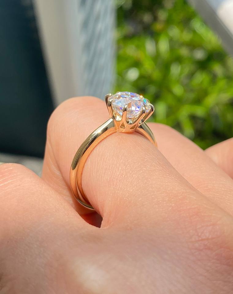 แหวนทองคำสีเหลือง18K สุดหรูพร้อม3.02CT VS1กลมแหวนเพชรเดี่ยวสำหรับปลูกในห้องปฏิบัติการของขวัญครบรอบสำหรับคู่รัก
