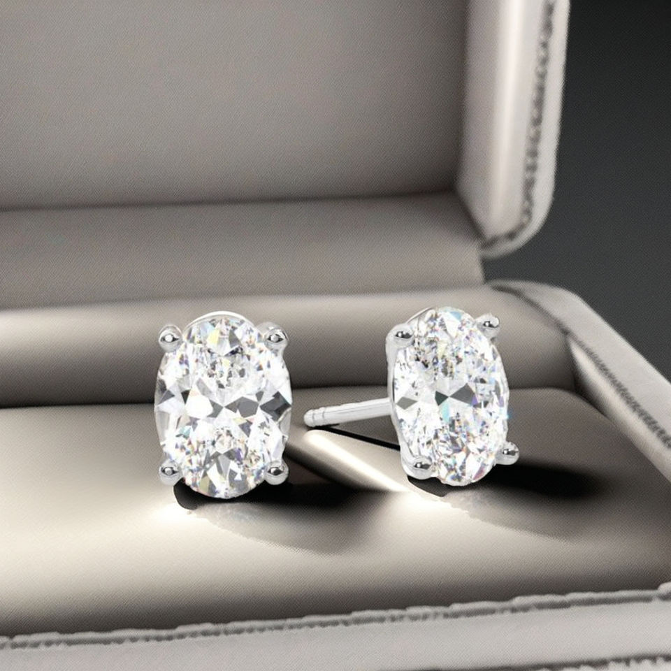 ต่างหูเพชรทรงรี 1 กะรัต ชุบทองคำขาว 18K ยี่ห้อ Vala Brothers Luxury สี E ความสะอาดระดับ VS ดีไซน์ทันสมัย
