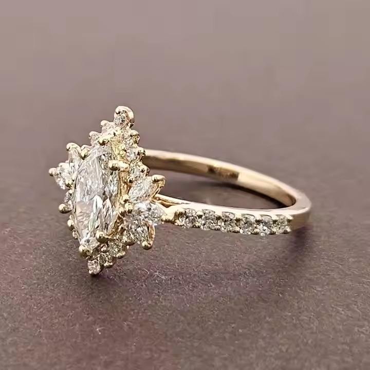 แหวนหมั้นเพชรแท้18K สำหรับผู้หญิงแหวนแต่งงานประดับเพชรแท้สำหรับผู้หญิง
