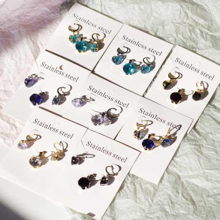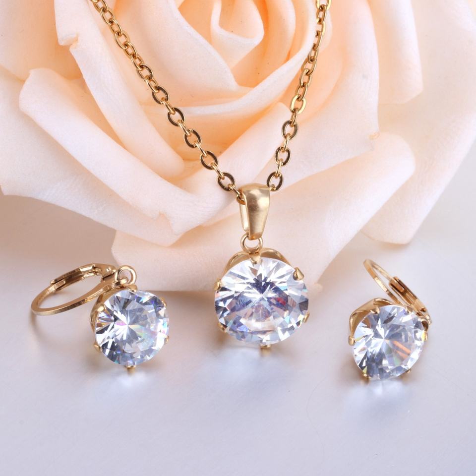 ชุดเครื่องประดับสแตนเลสชุบทอง 18k หรูหรา ประดับเพทายหลากสี สำหรับผู้หญิง ขายส่ง
