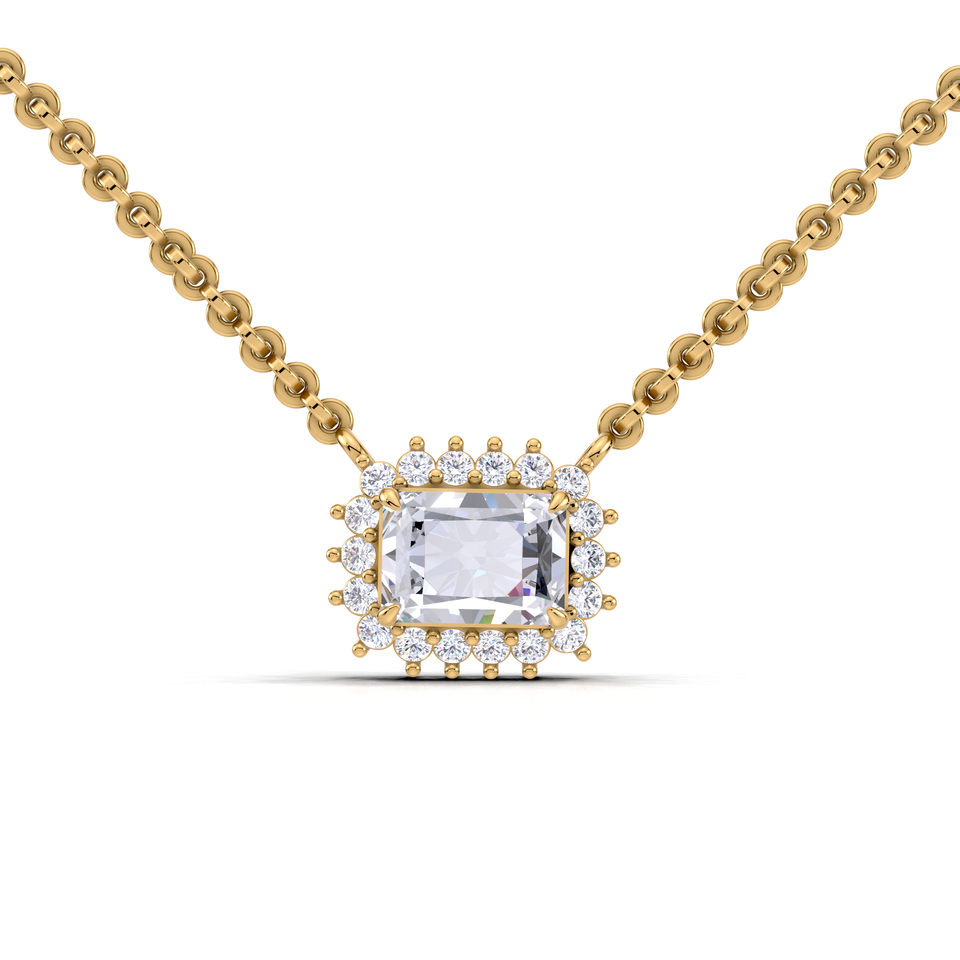 สร้อยคอจี้เพชรทรงรัศมี 1 กะรัต ดีไซน์หรูหรา ประดับเพชรแล็บทรงซันเบิร์สต์ ทอง 9K สีเหลือง ขาว และโรสโกลด์ สำหรับผู้หญิง