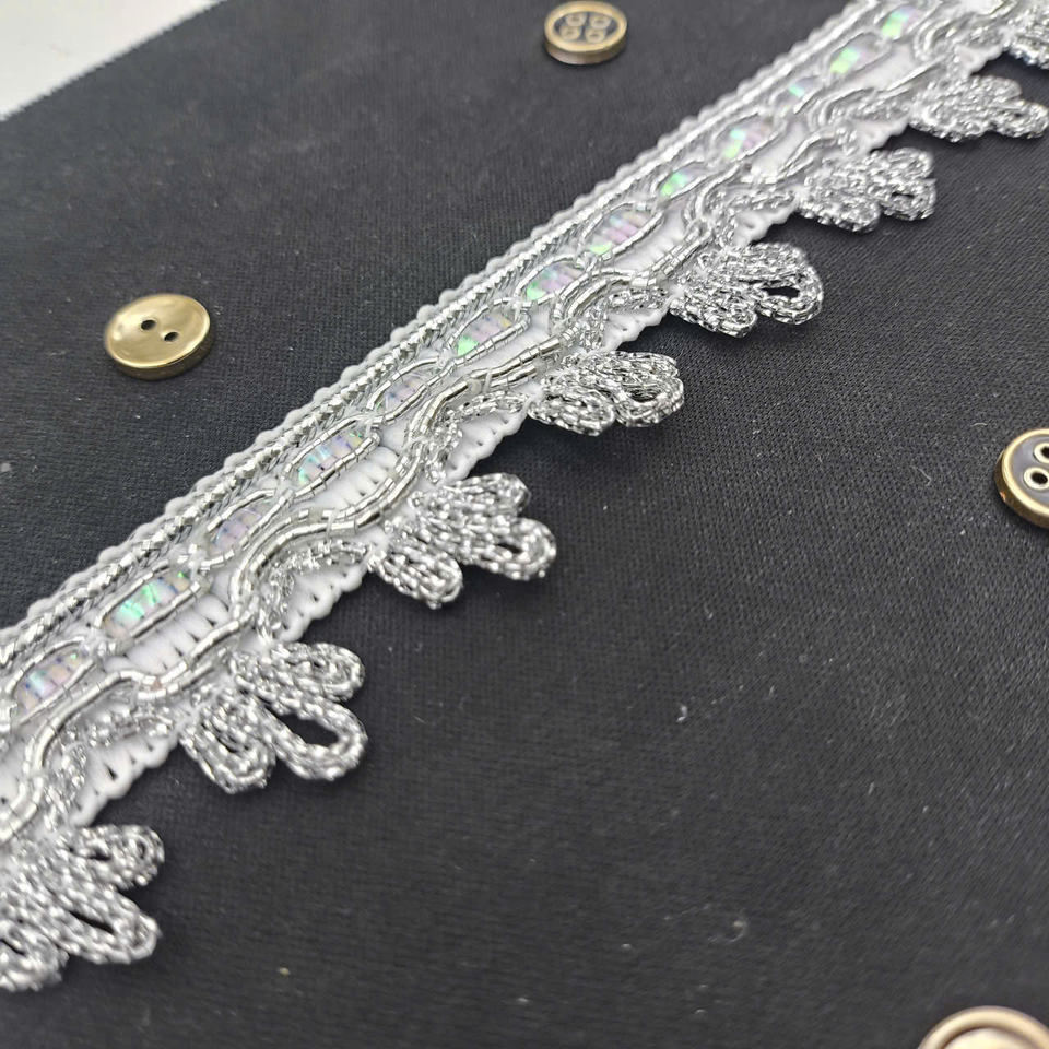 ริบบิ้นตกแต่งหรูหรา กว้าง 2.7 ซม. ทำจากโพลีเอสเตอร์เมทัลลิก พร้อมชายครุย สำหรับตกแต่งเสื้อผ้าและกระเป๋า
