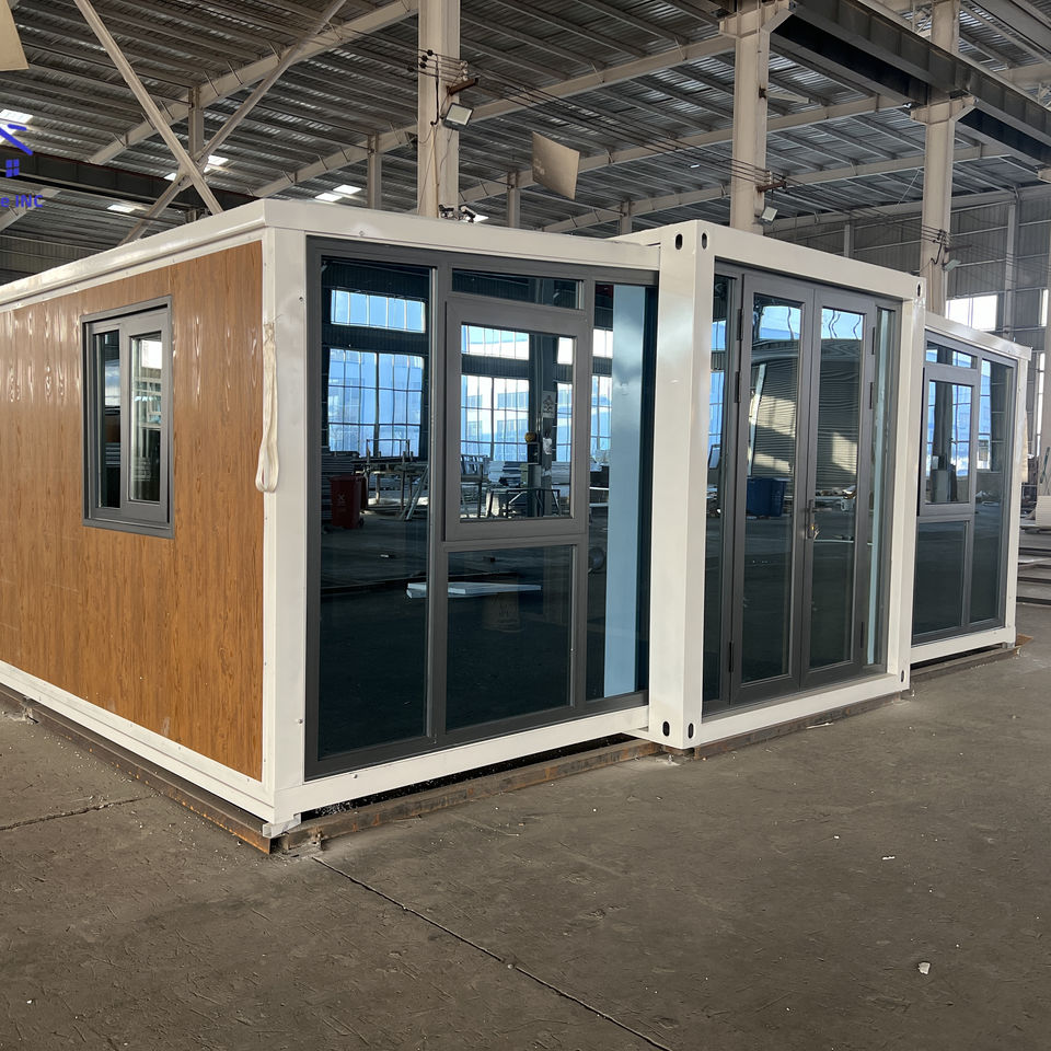 วิลล่าภาชนะขยายได้ดีไซน์แบบมีปีกพับเก็บได้ทำจากเหล็กใช้ในการเก็บเกี่ยวน้ำฝนหรูหรา2ห้องนอนเป็นมิตรกับสิ่งแวดล้อม