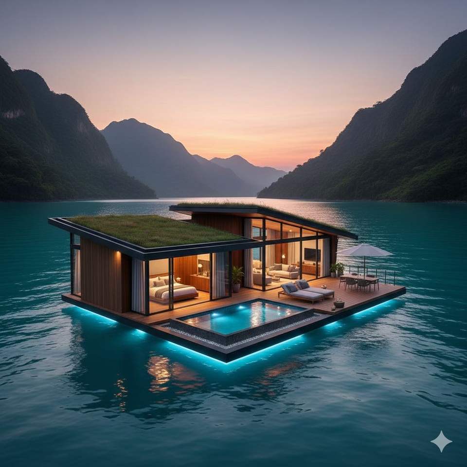 โรงแรมลอยน้ำสำเร็จรูปสุดหรู 2 ห้องนอน และบ้านวิลล่าแบบโมดูลาร์ขนาดเล็ก ชุดบ้านเคลื่อนที่ริมน้ำทันสมัยพร้อมจัดส่ง