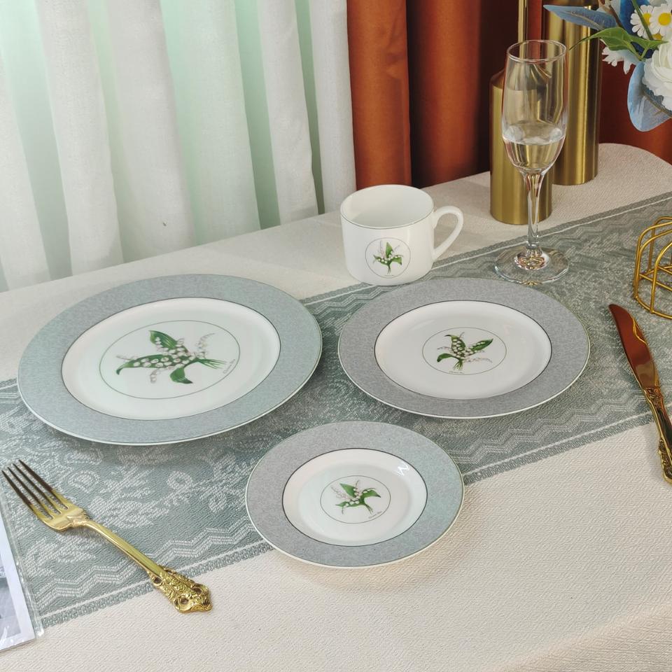ชุดภาชนะอาหารจีน2ชิ้นสุดหรูจานเซรามิกขนาด10นิ้วและ8นิ้วลายดอกลิลลี่จากหุบเขาภาชนะรับประทานอาหารยอดนิยม